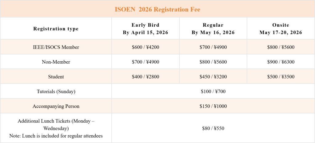 ⚠️ Each paper needs to be associated with one full author registration at either IEEE or ISOCS member rate, or non-member rate. One full registration can cover only up to two accepted paper.